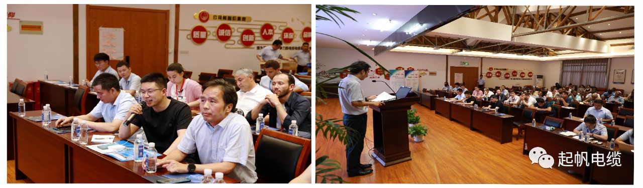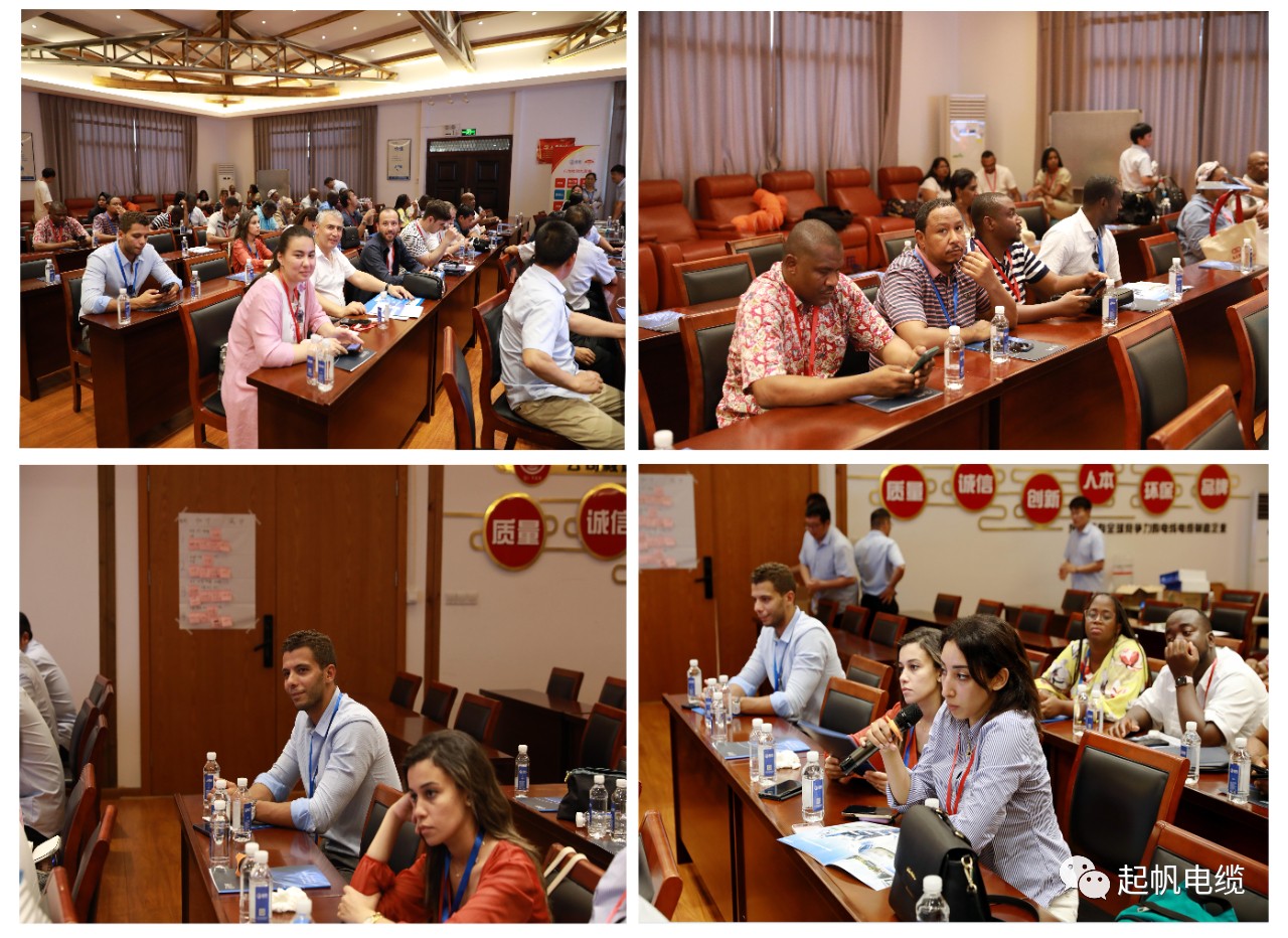 參觀結(jié)束后,起帆電纜董事長周桂華、董事會秘書陳永達、銷售總監(jiān)兼總經(jīng)理助理周智巧、生產(chǎn)副總周仙來和學員們進行了熱烈的座談交流。董事會秘書陳永達對研修班一行表達了熱烈的歡迎,并簡要介紹了起帆電纜目前經(jīng)營情況和企業(yè)愿景。雙方就發(fā)展中國家在電纜制造業(yè)中面臨的挑戰(zhàn)、技術(shù)合作和市場拓展等問題進行了深入的討論。